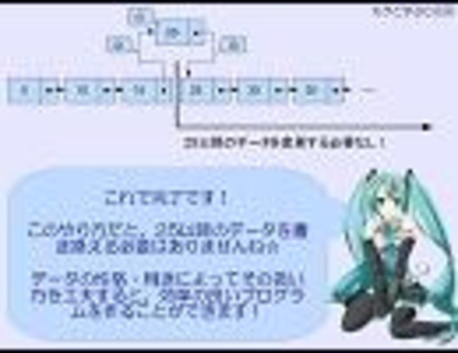 C言語の初学者のための講座です。<br />ミクと一緒に楽しく勉強しよう!<br />講義内容:リスト構造(自己参照構造体)、メモリの動的割当て(malloc()、free())、共用体、、etc...<br />参考プログラムのダウンロード[pass:mikuc]:<a href="http://www1.axfc.net/uploader/File/so/43815.zip" target="_blank" rel="noopener nofollow">http://www1.axfc.net/uploader/File/so/43815.zip</a><br />マイリスト:<a href="https://www.nicovideo.jp/mylist/11224473" target="_blank" rel="noopener">mylist/11224473</a><br />第01回:<a href="https://www.nicovideo.jp/watch/nm6216304" class="watch">nm6216304</a><br />第22回:<a href="https://www.nicovideo.jp/watch/nm10608442" class="watch">nm10608442</a>←|→第24回:<a href="https://www.nicovideo.jp/watch/nm10981993" class="watch">nm10981993</a><br /><br />Special Thanks!!<br />PIC:<a href="https://commons.nicovideo.jp/works/nc2140" target="_blank" rel="noopener">nc2140</a>,<a href="http://piapro.jp/isounagi,http://piapro.jp/nanashi_,http://piapro.jp/arahito0" target="_blank" rel="noopener nofollow">http://piapro.jp/isounagi,http://piapro.jp/nanashi_,http://piapro.jp/arahito0</a><br />BGM:<a href="https://www.nicovideo.jp/watch/sm1274898" class="watch">sm1274898</a>,<a href="https://www.nicovideo.jp/watch/sm5525531" class="watch">sm5525531</a>,<a href="https://www.nicovideo.jp/watch/sm10533832" class="watch">sm10533832</a>,<a href="https://www.nicovideo.jp/watch/sm5094908" class="watch">sm5094908</a>,<a href="https://www.nicovideo.jp/watch/sm9558887" class="watch">sm9558887</a>
