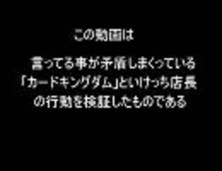 この動画は、有限会社「遊縁」の社長であり。自らも遊戯王やデュエルマスターズ、ヴァイスシュバルツのプレイヤーである、カードキングダムの店長池田さんに対する、批判の動画です。人によっては気分を悪くする事もあると思うので気をつけて御視聴ください。この動画に対しての批判のコメントを書く場合、批判理由を明らかにしてください。対応のしようがありません。 うp主自重しろ→この事を見てみぬふりは出来なかったので動画を作りました。 こちらも見てください→<a href="https://www.nicovideo.jp/watch/sm9728392" class="watch">sm9728392</a> 動画の最後の方にソースを追加しました。 コメ返答→<a href="https://www.nicovideo.jp/watch/nm9849366" class="watch">nm9849366</a> むしゃくしゃしてコメ禁してしまいました。すいません