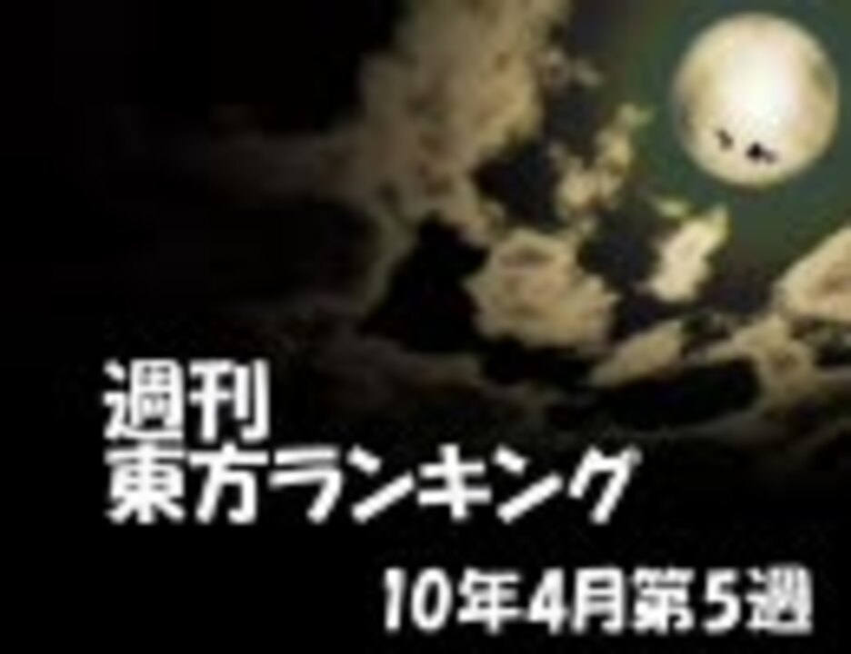 10年4月第5週作品リスト[<a href="https://www.nicovideo.jp/mylist/18826240" target="_blank" rel="noopener">mylist/18826240</a>] ☆週刊東方ランキング一覧[<a href="https://www.nicovideo.jp/mylist/10450068" target="_blank" rel="noopener">mylist/10450068</a>]<br />[<a href="https://www.nicovideo.jp/watch/sm10498835" class="watch">sm10498835</a>]←10年4月第4週 10年5月第1週→[<a href="https://www.nicovideo.jp/watch/sm10661325" class="watch">sm10661325</a>]<br /><br />【集計期間】 4/24(土) 0:00 - 5/1(土) 0:00<br />【集計方法】 ポイント数 = マイリスト数 + (再生数 ÷ 20)<br />【集計対象】 東方タグがついている作品、タイトルに東方が含まれる作品<br /><br />掲示板→<a href="http://www2.atchs.jp/toho/" target="_blank" rel="noopener nofollow">http://www2.atchs.jp/toho/</a><br />wiki→<a href="http://www39.atwiki.jp/tohoranking" target="_blank" rel="noopener nofollow">http://www39.atwiki.jp/tohoranking</a><br />エンドカード募集中!→<a href="http://www5.atpages.jp/tohonico/joyful/" target="_blank" rel="noopener nofollow">http://www5.atpages.jp/tohonico/joyful/</a><br /><br />月刊東方自作アレンジランキング 10年4月号→<a href="https://www.nicovideo.jp/watch/sm10570203" class="watch">sm10570203</a><br />