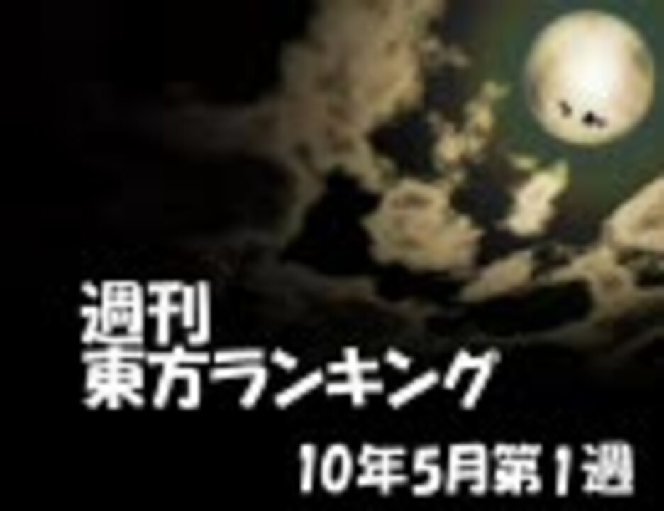 10年5月第1週作品リスト[<a href="https://www.nicovideo.jp/mylist/18945902" target="_blank" rel="noopener">mylist/18945902</a>] ☆週刊東方ランキング一覧[<a href="https://www.nicovideo.jp/mylist/10450068" target="_blank" rel="noopener">mylist/10450068</a>]<br />[<a href="https://www.nicovideo.jp/watch/sm10575850" class="watch">sm10575850</a>]←10年4月第5週 10年5月第2週→[<a href="https://www.nicovideo.jp/watch/sm10733076" class="watch">sm10733076</a>]<br /><br />【集計期間】 5/1(土) 0:00 - 5/8(土) 0:00<br />【集計対象】 東方タグがついている作品、タイトルに東方が含まれる作品<br /><br />掲示板→<a href="http://www2.atchs.jp/toho/" target="_blank" rel="noopener nofollow">http://www2.atchs.jp/toho/</a><br />wiki→<a href="http://www39.atwiki.jp/tohoranking" target="_blank" rel="noopener nofollow">http://www39.atwiki.jp/tohoranking</a><br />エンドカード募集中!→<a href="http://www5.atpages.jp/tohonico/joyful/" target="_blank" rel="noopener nofollow">http://www5.atpages.jp/tohonico/joyful/</a><br /><br />月刊東方ランキング 10年4月→<a href="https://www.nicovideo.jp/watch/sm10626172" class="watch">sm10626172</a><br />月刊東方自作アレンジランキング 10年4月号→<a href="https://www.nicovideo.jp/watch/sm10570203" class="watch">sm10570203</a><br />月刊新作東方手書きランキング 2010年4月号→<a href="https://www.nicovideo.jp/watch/sm10580568" class="watch">sm10580568</a><br /><br />東方年間録2009EX(2009 年東方関連タグランキング) Part1→<a href="https://www.nicovideo.jp/watch/sm10618031" class="watch">sm10618031</a><br /><br />TOHO CLOCK(仮) → <font color="red"><a href="http://boxell.jp/clock/" target="_blank" rel="noopener nofollow">http://boxell.jp/clock/</a><br /></font>