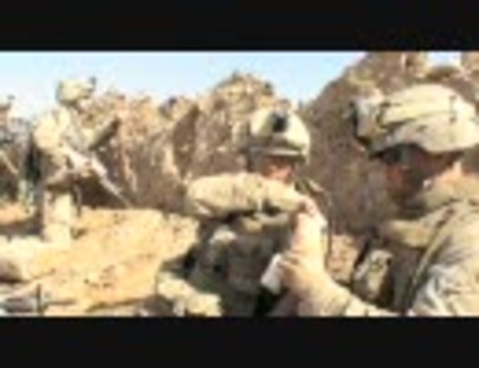 2010年04月撮影。タリバン狙撃兵と交戦中。第1次大戦で使われたエンフィールドライフルを民家から押収。アフガン軍(緑色の迷彩服)との合同部隊のようで軍曹がんばってます。わかりずらいですが、海兵隊の方にも狙撃兵はいます(1:08あたりの迷彩服緑の右)◆corpsman=衛生下士官 combat medic=衛生兵