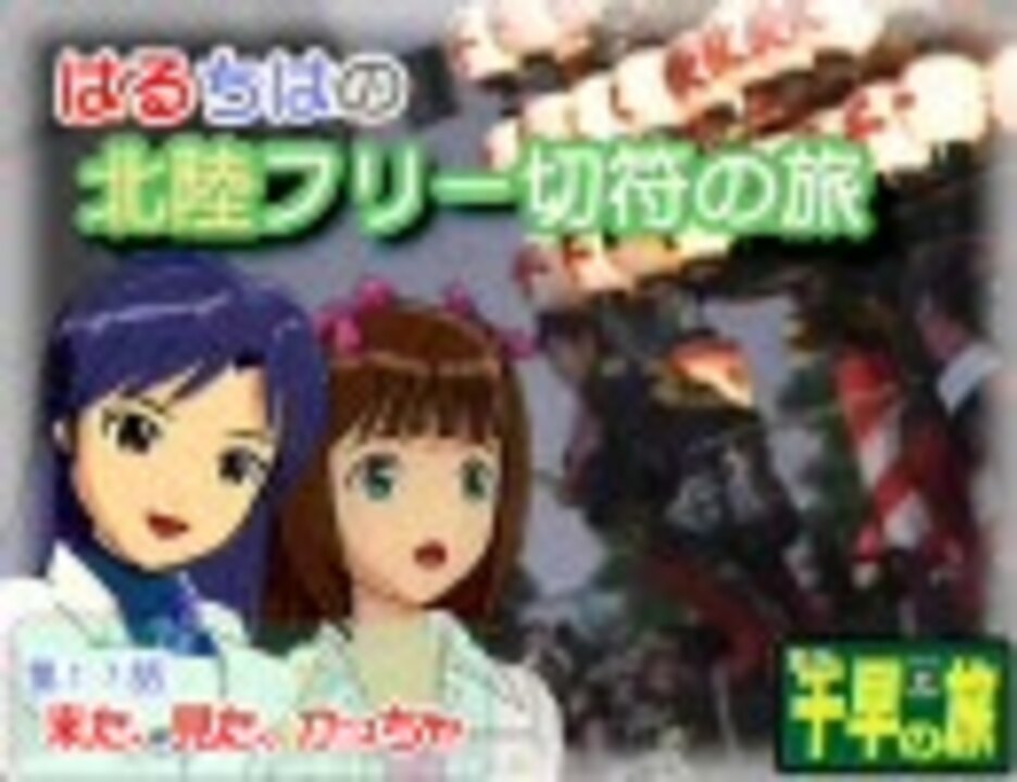 【warning!】この作品に出てくる千早さんは(ry<br />過去のシリーズをご覧になってからの視聴をお勧めします。<br />■第17話「来た、見た、かっちゃ!」<br />■ロケ日:2009/9/10~9/13(北陸フリーきっぷ使用)<br />・某寛山Pの<a href="https://www.nicovideo.jp/watch/sm9943431" class="watch">sm9943431</a>のネタをまるっとパクッた。<br />・次回最終回も、たいした話しにはならなそう・・・<br />・給湯(きゅうとう)を(きゅうゆ)と脳内誤変換したらこのザマ<br />│<a href="https://www.nicovideo.jp/watch/sm10697421" class="watch">sm10697421</a>←第16話│ 第17話│最終話→<a href="https://www.nicovideo.jp/watch/sm11060600" class="watch">sm11060600</a>│<br /><br />●作者作品マイリスト●<br />■旅m@sシリーズ→<a href="https://www.nicovideo.jp/mylist/7316796" target="_blank" rel="noopener">mylist/7316796</a><br />■制作記ブログ→<a href="http://blog.livedoor.jp/solanap/" target="_blank" rel="noopener nofollow">http://blog.livedoor.jp/solanap/</a><br />■ツイッタ:<a href="http://twitter.com/so_la_na_p" target="_blank" rel="noopener nofollow">http://twitter.com/so_la_na_p</a>