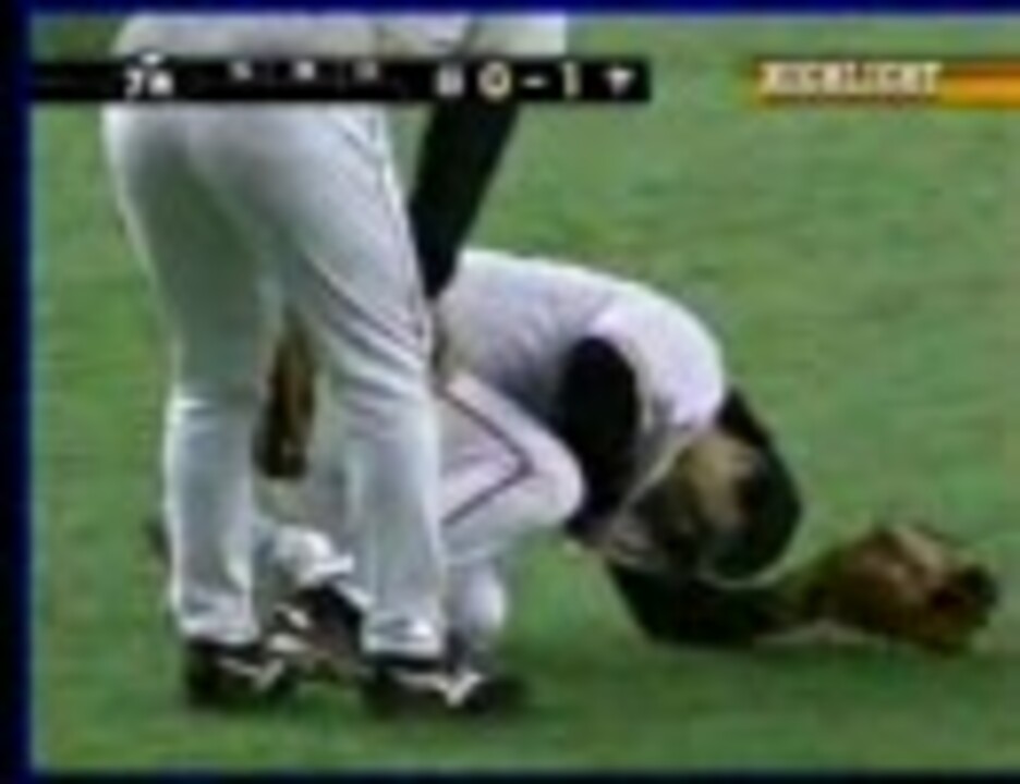 高橋由伸・ボテボテゴロを股間で強打→ピッチャー返し