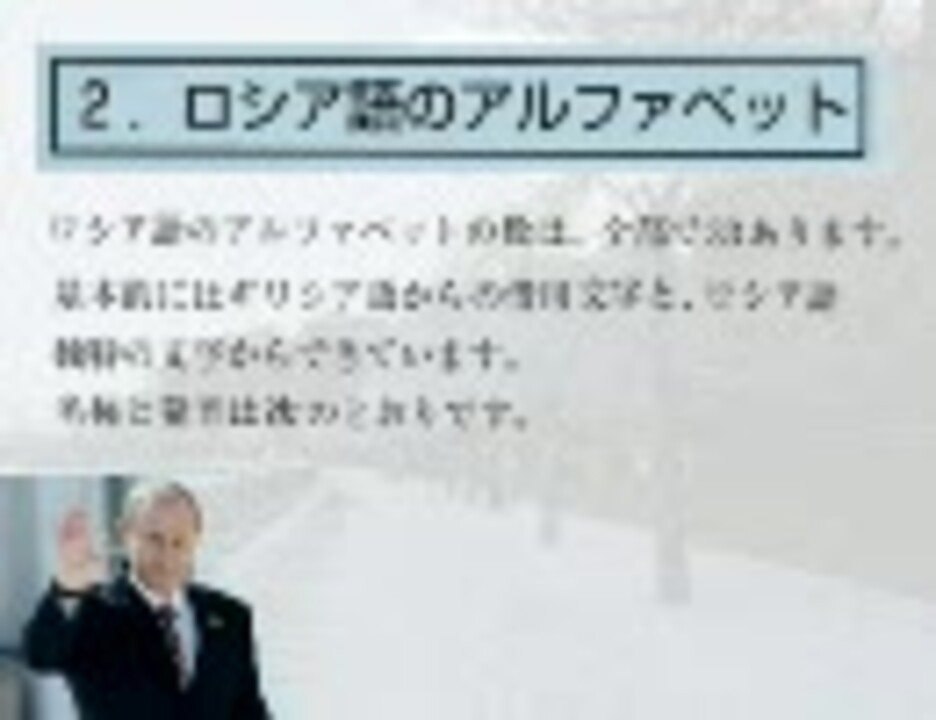 *アルファベットと発音 ***ロシア語講座の動画ってあんまり見かけない気がするので。 【1】挨拶と自己紹介⇒<a href="https://www.nicovideo.jp/watch/nm11232566" class="watch">nm11232566</a>