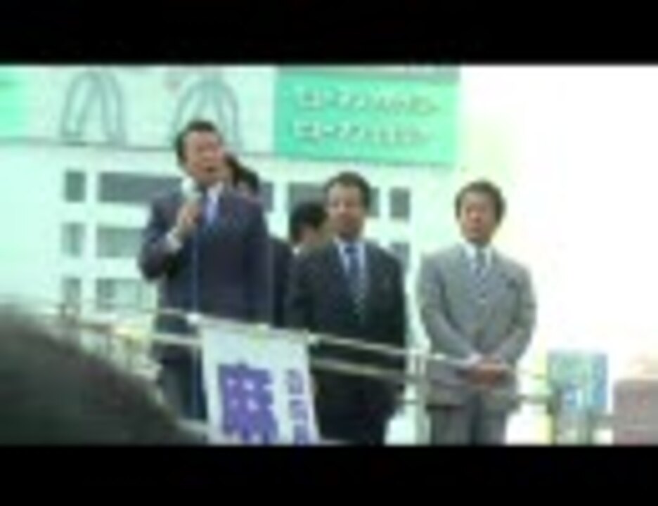 ファイルは昨日の深夜出来ていたのですが、アップロード何回も蹴られて、エンコードやり直しとかしていました。単にサーバーの調子が悪いみたいです。麻生さんはだいぶお疲れのようでした。内容はここまでの総裁選の応援に対するお礼のような感じです。総裁選の投票前までにアップしたかったので(特に意味があるわけではありませんが)、なんとか乗ってくれてよかったです。ねむい・・ 他の動画 (酒)←<a href="https://www.nicovideo.jp/watch/sm1120361" class="watch">sm1120361</a>、北村弁護士←<a href="https://www.nicovideo.jp/watch/sm1117155" class="watch">sm1117155</a>、演説後の聴衆の様子←<a href="https://www.nicovideo.jp/watch/sm1121035" class="watch">sm1121035</a>