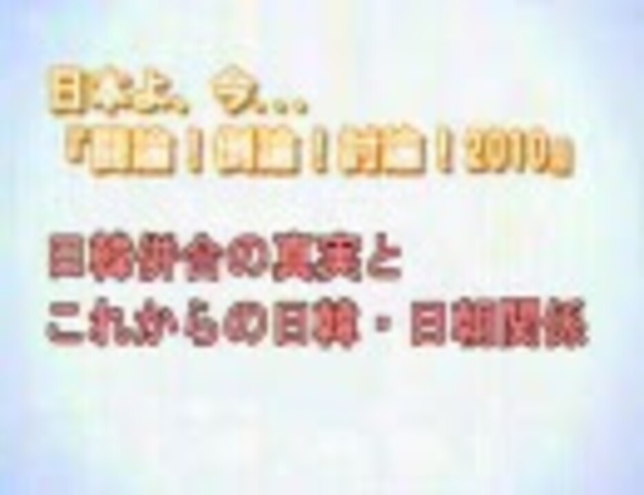 平成22年7月24日<br />日本文化チャンネル桜 日本よ、今...闘論!倒論!討論!2010【日韓併合の真実とこれからの日韓・日朝関係】<br />(YouTubeより動画連結)<br /><br />パネリスト:<br /> 黄文雄(作家・評論家)<br /> 杉本幹夫(自由主義史観研究会理事)<br /> 高山正之(ジャーナリスト)<br /> 西岡力(東京基督教大学教授)<br /> 三浦小太郎(評論家)<br /> 宮脇淳子(モンゴル史家・学術博士)<br /> 室谷克実(評論家)<br />司会:水島総<br /><br />次 <a href="https://www.nicovideo.jp/watch/sm11503253" class="watch">sm11503253</a>(移動します)