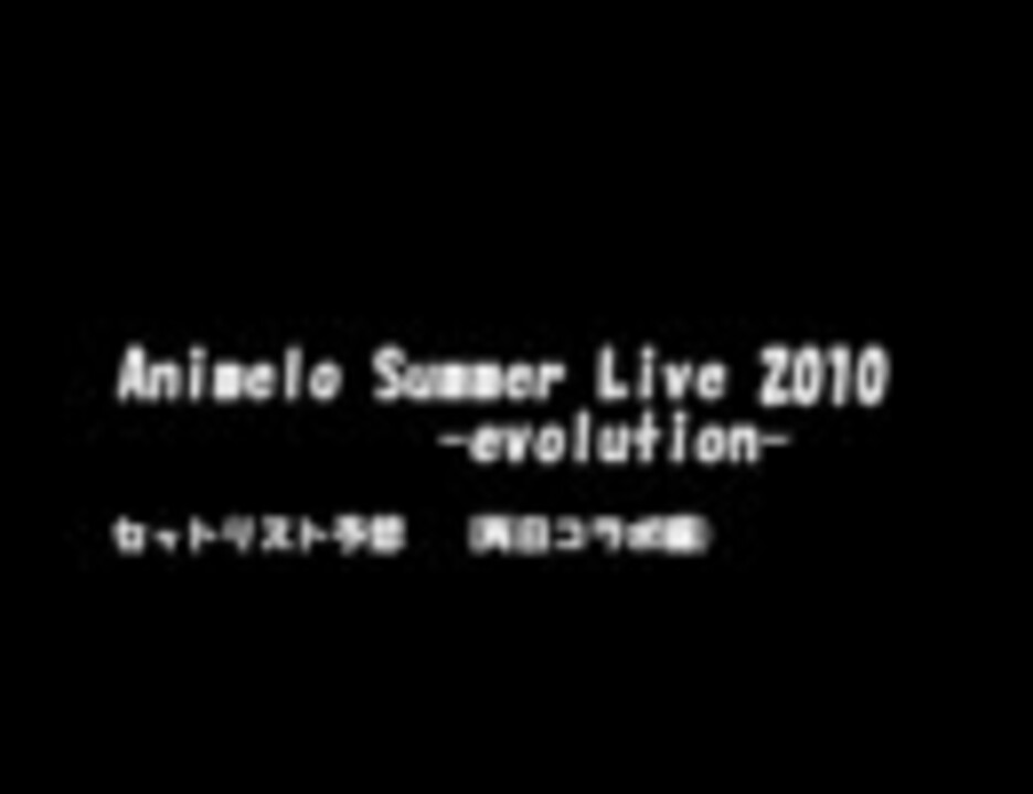 Animelo Summer Live 2010 -evolution-無事閉幕!皆さんお疲れ様でした!<br /><br />こちらはは8月28日(土)・8月29日(日)両日のコラボレーション予想です。<br /><br />…が、見事なまでにかすりもしませんでしたので(苦笑)近日中に削除するかもです。<br /><br /><br />-補足-<br />※1:あくまで個人的な予想であり、実際のセットリストとは大きく異なる可能性があります。<br />※2:タイアップに関してはアニメ・ゲーム・特撮関連以外はほぼ全て「ノータイアップ」として扱っています。<br /><br /><br />8月28日(土)⇒<a href="https://www.nicovideo.jp/watch/sm11820528" class="watch">sm11820528</a> / 8月29日(日)⇒<a href="https://www.nicovideo.jp/watch/sm11638248" class="watch">sm11638248</a><br />