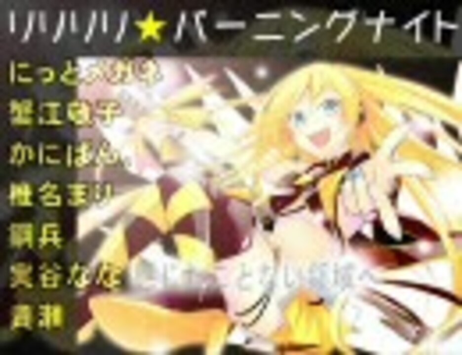 バーニング夜更かしして作った。されど動画が完成しなかった。<br />編曲もやっつけ感が…申し訳ないです。<br />とにかく見切り発車うp。バーニング寝不足。<br /><br /><font color="red" size=5>ということで動画版うp完了!!!!</font><br /><br /><font size=5>動画・調整版→<a href="https://www.nicovideo.jp/watch/sm11957053" class="watch">sm11957053</a></font><br /><br />使用させて頂きました動画一覧【<a href="https://www.nicovideo.jp/mylist/20787245" target="_blank" rel="noopener">mylist/20787245</a>】<br />本家様/<a href="https://www.nicovideo.jp/watch/sm11884641" class="watch">sm11884641</a> ニコカラ様/<a href="https://www.nicovideo.jp/watch/sm11893842" class="watch">sm11893842</a> にっとメガネ様/<a href="https://www.nicovideo.jp/watch/sm11886190" class="watch">sm11886190</a><br />蟹江敬子様/<a href="https://www.nicovideo.jp/watch/sm11891039" class="watch">sm11891039</a> (V)・∀・(V)様/<a href="https://www.nicovideo.jp/watch/sm11893683" class="watch">sm11893683</a> 椎名まり様/<a href="https://www.nicovideo.jp/watch/sm11894881" class="watch">sm11894881</a><br />鋼兵(富士山)様/<a href="https://www.nicovideo.jp/watch/sm11899854" class="watch">sm11899854</a> 実谷なな様/<a href="https://www.nicovideo.jp/watch/sm11904746" class="watch">sm11904746</a> 貴瀬様/<a href="https://www.nicovideo.jp/watch/sm11905705" class="watch">sm11905705</a><br /><br />【他にうpしたものです】<a href="https://www.nicovideo.jp/mylist/17552044" target="_blank" rel="noopener">mylist/17552044</a><br />