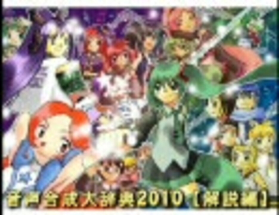 2010年1月31日までの音声合成をどどんと紹介。<br />その数、200を超えております。あまりに多いため<br />全部で3か月かけてどどんと紹介しますよ<br />OP <a href="https://www.nicovideo.jp/watch/sm11983716" class="watch">sm11983716</a><br />解説編 いまここ<br />part1 <a href="https://www.nicovideo.jp/watch/sm11984651" class="watch">sm11984651</a><br />part2 <a href="https://www.nicovideo.jp/watch/sm11984906" class="watch">sm11984906</a><br />part3 <a href="https://www.nicovideo.jp/watch/sm12291592" class="watch">sm12291592</a><br />part4 <a href="https://www.nicovideo.jp/watch/sm12292082" class="watch">sm12292082</a><br />part5 <a href="https://www.nicovideo.jp/watch/sm12292309" class="watch">sm12292309</a><br />part6 <a href="https://www.nicovideo.jp/watch/sm12626319" class="watch">sm12626319</a><br />part7 <a href="https://www.nicovideo.jp/watch/sm12626550" class="watch">sm12626550</a><br />ルーキー枠 <a href="https://www.nicovideo.jp/watch/sm12626769" class="watch">sm12626769</a><br />ED <a href="https://www.nicovideo.jp/watch/sm12626924" class="watch">sm12626924</a><br />マイリスト 11月3週公開予定