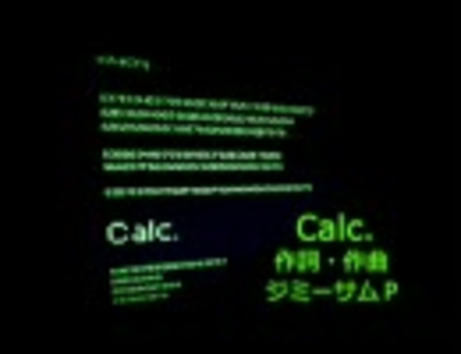 「Calc.」のニコカラOnVocal版です。<br />探しても見当たらなかったので、自分用に作ってみました。<br />なので、画質音質は…気にしてません…orz<br />動画は初めて自分で作成しました。多少の誤差等はご容赦ください。<br /><br />素敵無敵な本家様:<a href="https://www.nicovideo.jp/watch/sm12050471" class="watch">sm12050471</a><br /><br />自作ニコカラ集:<a href="https://www.nicovideo.jp/mylist/19915266" target="_blank" rel="noopener">mylist/19915266</a><br />↓ニコカラ作成リクはこちらから↓<br /><a href="http://id8.fm-p.jp/81/megyuchoco/index.php" target="_blank" rel="noopener nofollow">http://id8.fm-p.jp/81/megyuchoco/index.php</a><br /><br />温かなコメント、助言ありがとうございます。また次に作るときの参考にさせてもらいます!<br /><br />2012/4/16 10万再生ありがとうございます!処女作がここまでいくとは(;゚;ж;゚; )今後ともよろしくお願いします(。・ω・。)ノ