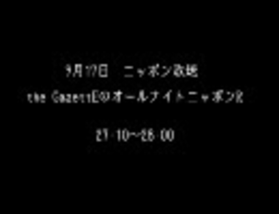 ノイズ注意!■9月17日に放送されたニッポン放送「the GazettEのオールナイトニッポンR」の27:00~28:00分です。上手く録音できず、頭10分くらい抜けてます。■ ■電波が悪く、またうp主の技術力ではこれ以上ノイズを除去できなかった為、「とりあえず聞ければ良い」人向けとなってしまいました(滝汗)■ ■28:00~28:30分はコチラ(<a href="https://www.nicovideo.jp/watch/sm12144205" class="watch">sm12144205</a>)■