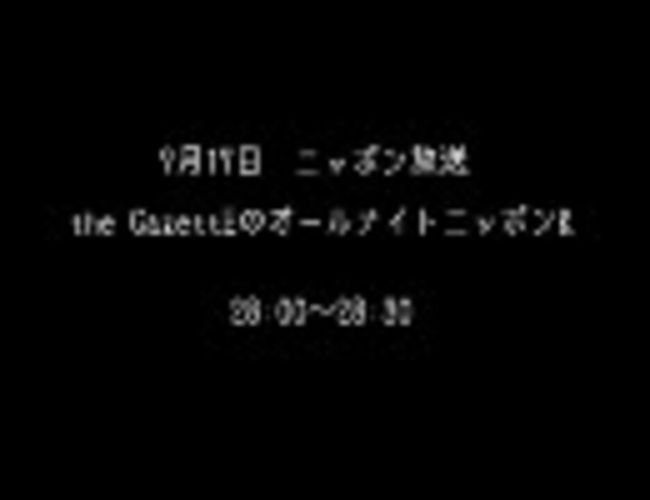 ノイズ注意! ■9月17日に放送されたニッポン放送「the GazettEのオールナイトニッポンR」28:00~28:30分です■ ■27:00~28:00分(<a href="https://www.nicovideo.jp/watch/sm12144156" class="watch">sm12144156</a>)に引き続き音質最悪で、「とりあえず聞ければ良い」人向けとなってしまいました。すいません■ ■うp主の受信環境では28:30以降は放送されませんでした(涙)■