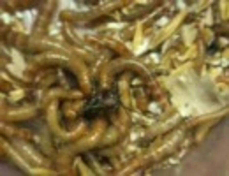 データ詳細 飢えたミールワームたちのコオロギ捕食
