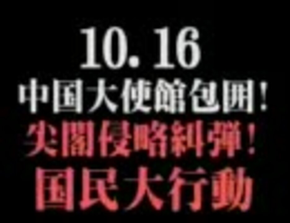 10月16日に『中国大使館包囲!尖閣侵略糾弾!国民大行動』を予定しております。<br />日本を中国の侵略から守るべく、皆様のご参加をお願いいたします。<br /> <br />◆日時・内容:平成22年10月16日(土)<br /> 14時00分 集会 青山公園 南地区 (地下鉄「乃木坂」駅 5番出口)<br /> 15時30分 デモ行進 出発<br /> 16時10分 デモ行進 三河台公園 到着 → 終了後、中国大使館前にて抗議行動<br /><br />チャンネル桜関連→ <a href="https://www.nicovideo.jp/mylist/12958032" target="_blank" rel="noopener">mylist/12958032</a> <a href="https://www.nicovideo.jp/mylist/17781722" target="_blank" rel="noopener">mylist/17781722</a><br /><br />公式も再生しよう → <a href="http://www.youtube.com/watch?v=Zk1chxuEpDM" target="_blank" rel="noopener nofollow">http://www.youtube.com/watch?v=Zk1chxuEpDM</a><br /><br />YouTubeのアカウントがある方は黄色の「チャンネル登録」ボタンをクリックして支援 → <a href="http://www.youtube.com/user/SakuraSoTV" target="_blank" rel="noopener nofollow">http://www.youtube.com/user/SakuraSoTV</a><br /> <br />二千人委員会 → <a href="http://www.ch-sakura.jp/579.html" target="_blank" rel="noopener nofollow">http://www.ch-sakura.jp/579.html</a><br /><br />So-TV → <a href="http://www.so-tv.jp" target="_blank" rel="noopener nofollow">http://www.so-tv.jp</a>