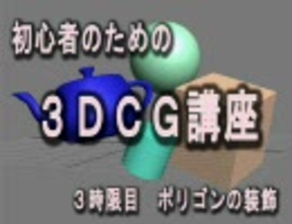 ■目標、中学生にも理解できる3DCG講座。<br />■ガチ勉強用動画です。<font color=red>ミクが見たくて来た方は4時限目からどうぞ</font><br />■勘違いしてる方も多いようですが、MAXの使い方講座ではありませんのでなるべくどの3Dソフトにも同じ様な機能があるものだけ使用するようにしています。<br />■お借りした曲 IevanPolkka→<a href="https://www.nicovideo.jp/watch/sm982882" class="watch">sm982882</a> ふたりのもじぴったん→<a href="https://www.nicovideo.jp/watch/sm1026257" class="watch">sm1026257</a> GoMyWay→<a href="https://www.nicovideo.jp/watch/sm1109430" class="watch">sm1109430</a><br />■2時限目<a href="https://www.nicovideo.jp/watch/sm1240167" class="watch">sm1240167</a><br />■4時限目<a href="https://www.nicovideo.jp/watch/sm1262714" class="watch">sm1262714</a><br />■講座リスト:<a href="http://www.nicovideo.jp/mylist/110660/3020761" target="_blank" rel="noopener nofollow">http://www.nicovideo.jp/mylist/110660/3020761</a><br />■本編リスト:<a href="http://www.nicovideo.jp/mylist/110660/3757197" target="_blank" rel="noopener nofollow">http://www.nicovideo.jp/mylist/110660/3757197</a><br />