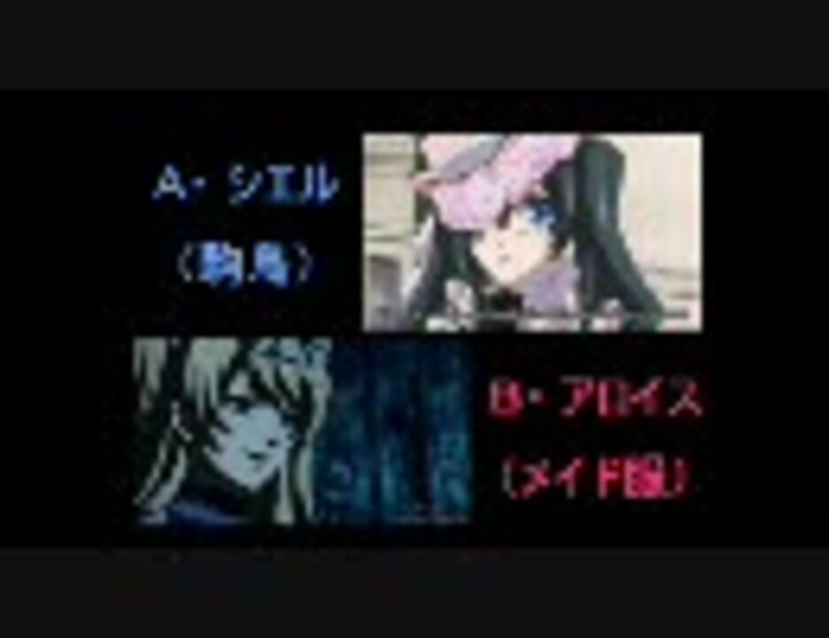 貴方のお好みのキャラや趣味性(?)などをぜひ教えてください!素朴に「セバスとシエルはどちらが人気あるのかな?」「どっち派の人が多いのかな~?」などと疑問に思ったことを二択にしてみました。1問だけでも良いのでお答え頂けると嬉しいDEATH☆.....【腐!悪魔シエル&セバスチャンのお熱い夫婦生活 ※お子様厳禁】→<a href="https://www.nicovideo.jp/watch/sm15833513" class="watch">sm15833513</a>.....【腐!悪魔シエル&セバスチャンの超エロ新婚生活 ※お子様厳禁】→<a href="https://www.nicovideo.jp/watch/sm14235510" class="watch">sm14235510</a>.....【腐!悪魔シエル&セバスチャンで超えろシーン♪※お子様厳禁】→<a href="https://www.nicovideo.jp/watch/sm13711486" class="watch">sm13711486</a>.....【セバスチャン VS 架空請求業者(本物)】→<a href="https://www.nicovideo.jp/watch/sm13485937" class="watch">sm13485937</a>.....【黒執事で「ラジオ体操第一」!!! (※子供は真似できません)】→<a href="https://www.nicovideo.jp/watch/sm15371903" class="watch">sm15371903</a>.....【セバスチャン・ミカエリスの過去…少年時代のお姿DEATH!】→<a href="https://www.nicovideo.jp/watch/sm16050046" class="watch">sm16050046</a>......<a href="https://www.nicovideo.jp/mylist/20651269" target="_blank" rel="noopener">mylist/20651269</a>