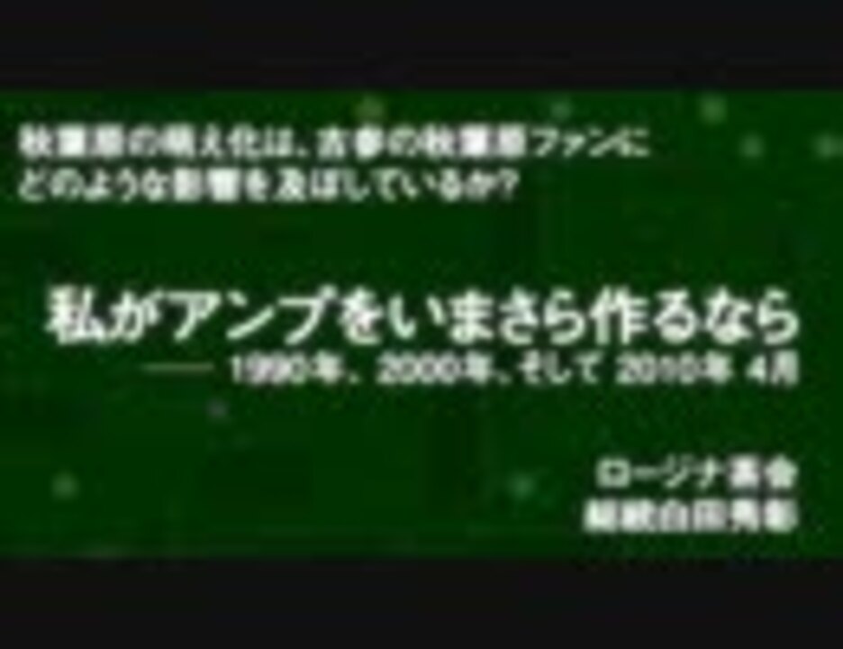 秋原の萌え化は、古参秋葉原ファンにどのような影響を及ぼしているか?<br /><br />(<b>冬コミ前なので、夏コミで配布したまとめDVDのスペシャルコンテンツを公開! ロージナ茶会は今度の冬コミにも出ます。よろしくね!!</b>)<br /><br />昨今もアトレが建つなど次々と変遷を遂げる秋葉原ですが、かつての古参オーディオファンにとっての秋葉原は今どうなっているのか? 20年前に白田総統が歩いた道を今再び辿り、歴戦のオーディオ店がどうなったのかを探ります。<br /><br /><br />ロージナ茶会の今までの番組: <a href="https://www.nicovideo.jp/mylist/10822952" target="_blank" rel="noopener">mylist/10822952</a><br /><br /><br />出演:白田秀彰, ヨコタン(横田真俊)<br />Photo: Patrick Hoesly (CC-by)<br />白田秀彰総統公式Web: <a href="http://orion.t.hosei.ac.jp/hideaki/" target="_blank" rel="noopener nofollow">http://orion.t.hosei.ac.jp/hideaki/</a><br />横田真俊 P2P Today ダブルスラッシュ: <a href="http://wslash.com/" target="_blank" rel="noopener nofollow">http://wslash.com/</a><br /></b></b>