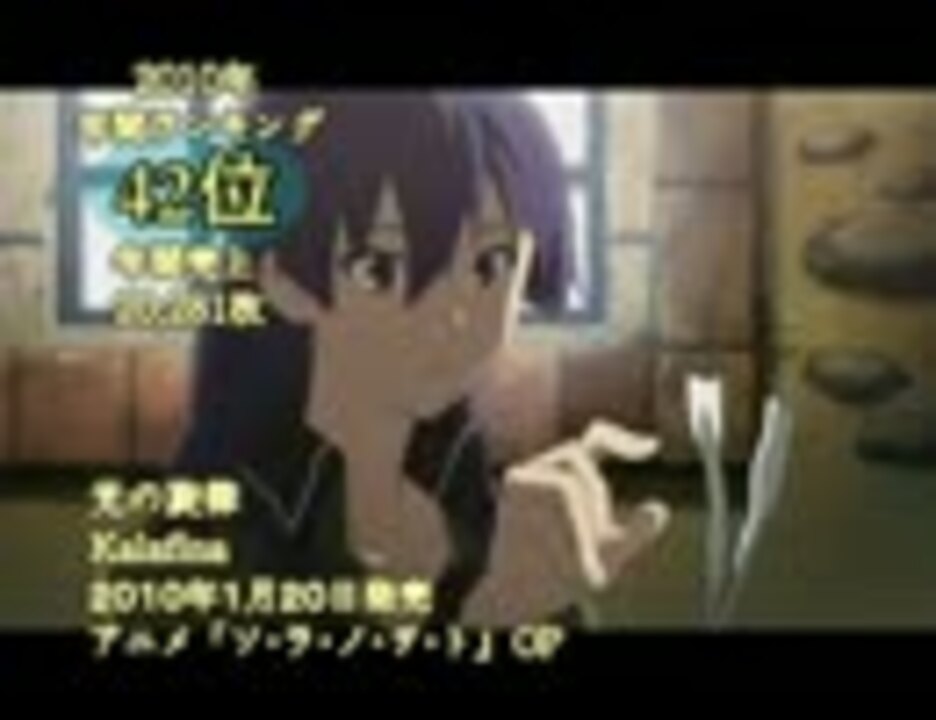 対象は一般アーによるタイアップを除く、アニソン・ゲーソン・声優ソング、<br />(集計期間2009年12月14日~2010年12月12日)になります。<br />100位~61位→<a href="https://www.nicovideo.jp/watch/sm13036330" class="watch">sm13036330</a> 30位~1位→<a href="https://www.nicovideo.jp/watch/sm13049848" class="watch">sm13049848</a> マイリスト・・・<a href="https://www.nicovideo.jp/mylist/6962606" target="_blank" rel="noopener">mylist/6962606</a>。<br />200位~151位→<a href="https://www.nicovideo.jp/watch/sm13105722" class="watch">sm13105722</a>