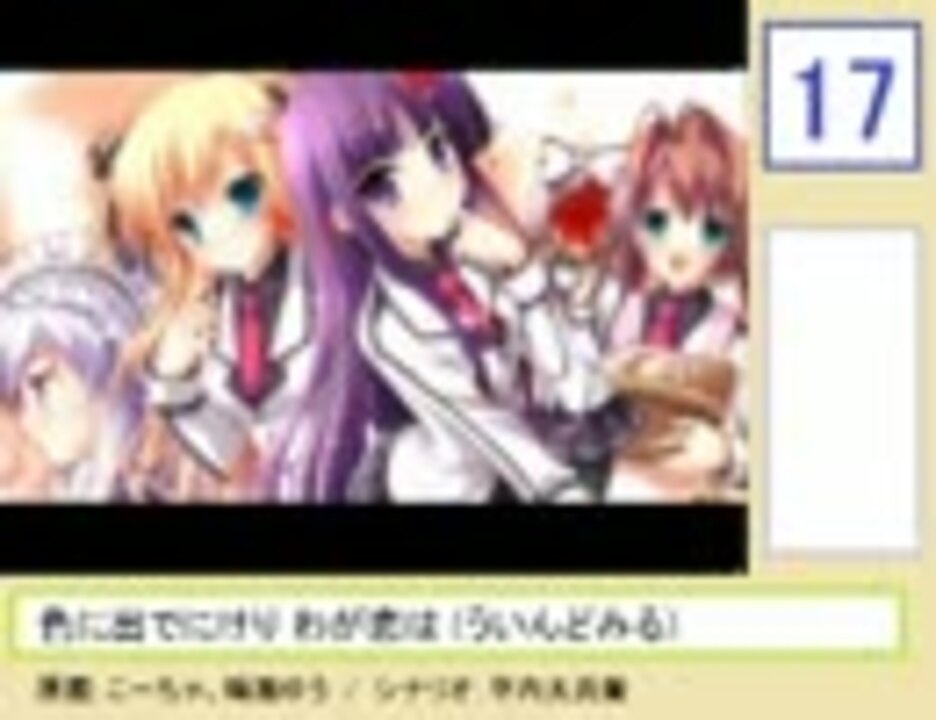 タントゥーさんのメディオ!グッズ&特典担当の「担当ブログ」with「萌魂工房」の<br />『メディオ!秋葉原2010年エロゲ販売ランキングベスト30』を基に作ったランキング動画です。<br />「備考」の部分はいろいろ書こうと思ったんですが結局書くほど知識がありませんでした。書いてある「萌えゲーアワード2010」の結果は別の人が動画あげてます→<a href="https://www.nicovideo.jp/watch/sm13080408" class="watch">sm13080408</a><br />☆もう一つ年間売り上げランキングをうpしました!<br />パソコンショップMK年間セールスランキングTOP30:<a href="https://www.nicovideo.jp/watch/sm13382080" class="watch">sm13382080</a><br />Amazon2010アダルトPCゲームランキング:<a href="https://www.nicovideo.jp/watch/sm13418179" class="watch">sm13418179</a>、Amazon2009:<a href="https://www.nicovideo.jp/watch/sm13418179" class="watch">sm13418179</a><br />アリスNET2010売れ筋TOP5:<a href="https://www.nicovideo.jp/watch/sm13378798" class="watch">sm13378798</a><br /><br /><b>【NEW】萌えげーアワード2010・ユーザー支持賞投票ランキング</b>:<a href="https://www.nicovideo.jp/watch/sm13482634" class="watch">sm13482634</a><br /><br />2010年のエロゲランキングなどを集めたマイリスト:<a href="https://www.nicovideo.jp/mylist/23387512" target="_blank" rel="noopener">mylist/23387512</a>