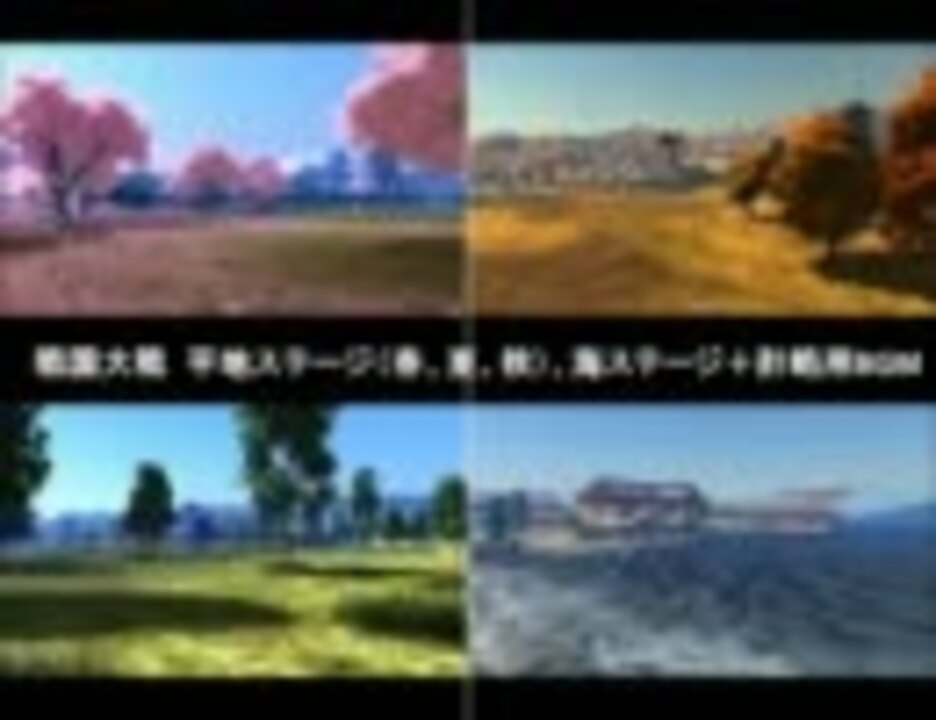 戦国大戦の平地ステージ(春、夏、秋)、海ステージ+αのBGM集です。<br />戦闘は一斉行っていないので(海除く)作業用BGMとしてお使いください。<br /><br />0:05~0:24 開幕BGM<br />0:25~4:37 平地(春)(勝ちBGM、開幕のあいさつ、駒井高白斎)<br />4:49~9:02 平地(秋)(負けBGM、開幕のあいさつ、甘利虎泰)<br />9:14~13:27 平地(夏)(負けBGM、開幕のあいさつ、岡部兄)<br />13:37~ 海(負けBGM、開幕のあいさつ、丹羽長秀)(※15:18~16:46は計略使用中BGM)<br /><br />BGM②(山、岩山)【<a href="https://www.nicovideo.jp/watch/sm13578273" class="watch">sm13578273</a>】BGM③(冬、城下町)【<a href="https://www.nicovideo.jp/watch/sm13707732" class="watch">sm13707732</a>】<br />戦国マイリス【<a href="https://www.nicovideo.jp/mylist/24052675" target="_blank" rel="noopener">mylist/24052675</a>】 <br /><br />編集していただいた動画平地(秋)【<a href="https://www.nicovideo.jp/watch/sm13692109" class="watch">sm13692109</a>】、平地(夏)【<a href="https://www.nicovideo.jp/watch/nm13720299" class="watch">nm13720299</a>】、采配BGM【<a href="https://www.nicovideo.jp/watch/sm13754342" class="watch">sm13754342</a>】<br />采配BGMは独自に撮影なさってます。