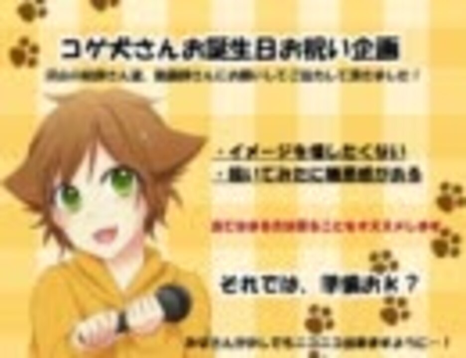 <font size="6" color="red">コゲ犬氏 は レベル が 1 上がった! ▼</font><br /><br />コゲ犬さん誕生日おめでとうございます!来たるべくして来た今日2月21日!素敵な絵師様方、動画師の協力の下、このようなお祝いの場が出来た事、全ての方に感謝しております!<br /><br />■この動画は、歌い手「コゲ犬」さんを描いてみた動画です。苦手な方はそっと戻る事をオススメします(。◕‿‿◕。)<br /><br />「この気持ちが少しでも伝わるといいね」<br /><br />■参加された絵師様一覧:<a href="https://www.nicovideo.jp/mylist/23725626" target="_blank" rel="noopener">mylist/23725626</a><br />■コゲ犬さんマイリスト:<a href="https://www.nicovideo.jp/mylist/18683744" target="_blank" rel="noopener">mylist/18683744</a><br />■優しき動画師:ふっくさん<a href="https://www.nicovideo.jp/mylist/20728933" target="_blank" rel="noopener">mylist/20728933</a>(大変お世話になりました。ありがとうございました。)<br />■企画主:ちゃーりー/あいぼん<br /><br />ゆっくりニコニコしていってね!(U^ω^)わんわんお!