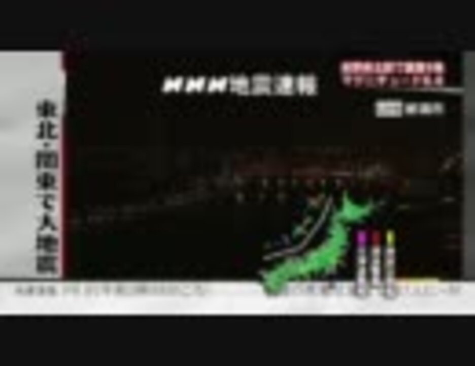 3月11日午後2時46分に発生した東北地方太平洋沖地震の地震情報放送中の出来事。録画した時刻は3月12日午前3時58分頃~4時19分頃。一応エコノミー回避画質。<br>忙しい人用→1回目:<a href="#" class="seekTime" data-seekTime="0:53" onclick="seekNicoPlayer('#0:53'); return false;">#0:53</a> 2回目:<a href="#" class="seekTime" data-seekTime="10:51" onclick="seekNicoPlayer('#10:51'); return false;">#10:51</a> 3回目:<a href="#" class="seekTime" data-seekTime="18:11" onclick="seekNicoPlayer('#18:11'); return false;">#18:11</a> <br><br>2012/10/17追記:投稿から既に1年以上経ちましたが、一応一部のコメントの非表示化と投稿者コメントによる解説(?)を追加させていただきました。