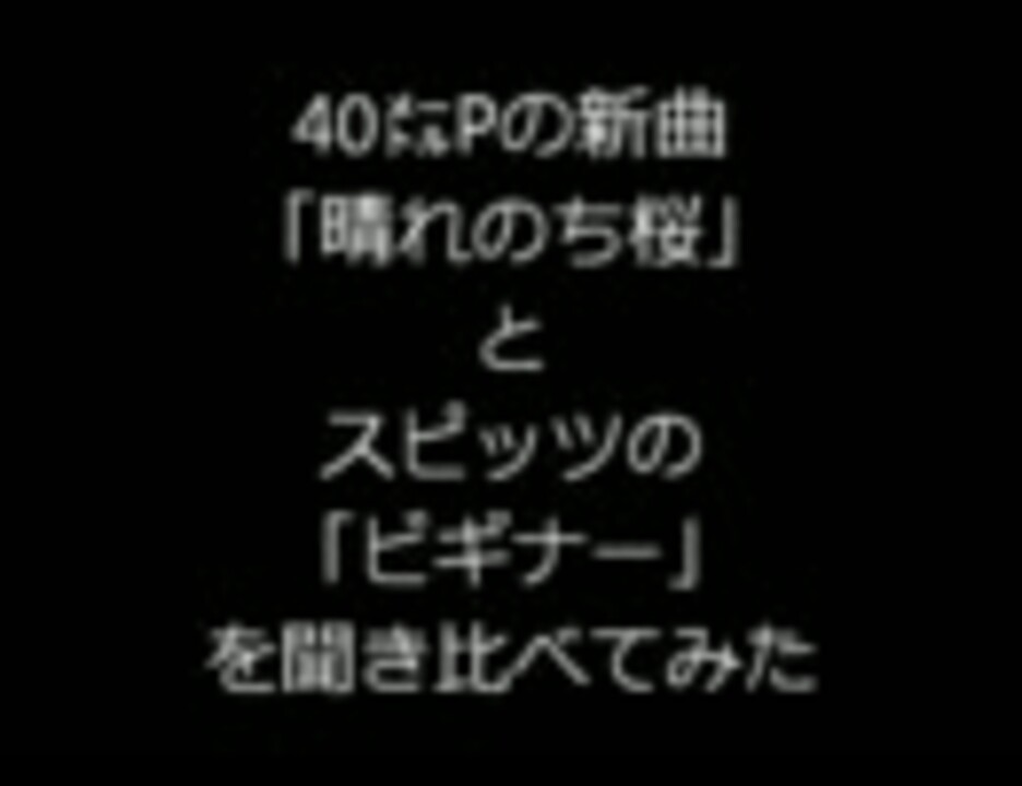 40㍍P「晴れのち桜」 <a href="https://www.nicovideo.jp/watch/sm13940452" class="watch">sm13940452</a> 40㍍Pの新曲「晴れのち桜」とスピッツの「ビギナー」を聞き比べてみた だらだらと長い版<a href="https://www.nicovideo.jp/watch/sm13947675" class="watch">sm13947675</a> (2011/3/26 9;30)40㍍Pさんがブログで今回の件についてお話されています。<a href="http://40meter.blog125.fc2.com/blog-entry-147.html" target="_blank" rel="noopener nofollow">http://40meter.blog125.fc2.com/blog-entry-147.html</a>