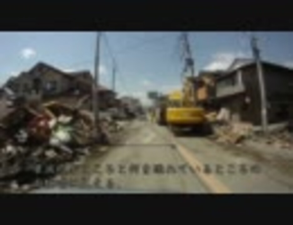 この度の東日本大震災において被災された方に心よりお見舞い申し上げます.<br /><br />理由あって相馬市・南相馬市を訪れました.この時,甚大な津波被害の様子を車載撮影することができました.<br />福島県は原発の報道が殆どだったので津波被害がこれ程酷いと知り言葉を失いました.亡くなられた方のご冥福と,まだ見つかっていない方の一日も早い発見をお祈り申し上げます.<br /><br />撮影日;4月12日(火)<br />撮影範囲;相馬市原釜尾浜海水浴場方向から松川浦へ.さらに南進して海岸線と平行に走った後,西の6号バイパスへと戻る.<br /><br />福島第1原発2km地点まで接近.20km圏内の津波被害など.→<a href="https://www.nicovideo.jp/watch/sm14162085" class="watch">sm14162085</a><br />福島県 相馬市・南相馬市津波被害状況<a href="https://www.nicovideo.jp/mylist/24935824" target="_blank" rel="noopener">mylist/24935824</a>