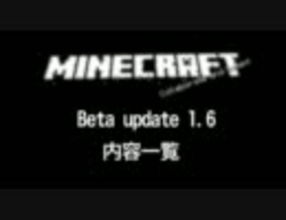 1万再生ありがとうございます!<br />トラップドア検証してたら匠の大爆発の謎エラーでマップエディタで救済しないといけなくなったorz<br /><br />文字だけの動画だけど許して!<br /><br />5月24日早朝に公開された1.6のアップデート内容まとめ。<br />和訳は2chから勝手にお借りした。すまぬ。<br /><br />BGMはニコニコモンズより。<br /><a href="https://commons.nicovideo.jp/works/nc27155" target="_blank" rel="noopener">nc27155</a> 【初音ミク】lost dandelion【カラオケ】<br /><br />The changelist for 1.6 : The Word of Notch<br /><a href="http://notch.tumblr.com/post/5775170768/the-changelist-for-1-6" target="_blank" rel="noopener nofollow">http://notch.tumblr.com/post/5775170768/the-changelist-for-1-6</a><br /><br />2chスレ:Minecraft 61ブロック目(重複なので実質62)<br /><a href="http://yuzuru.2ch.net/test/read.cgi/game/1305951413/" target="_blank" rel="noopener nofollow">http://yuzuru.2ch.net/test/read.cgi/game/1305951413/</a><br />ID:RHG6lCHV,sf6SvyyU,FFc/t1Kd 様に感謝(1ID動画に入れ忘れてました)<br /><br />匠でエルシャダイMAD作った <a href="https://www.nicovideo.jp/watch/sm14551824" class="watch">sm14551824</a>