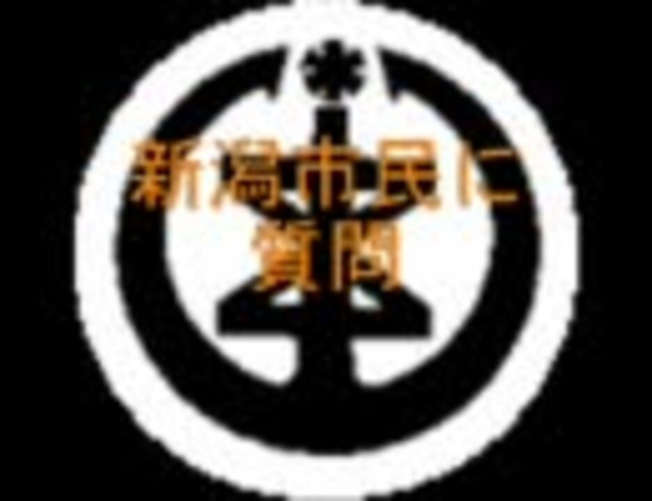 カッとなって作ってしまいました、「横浜市民に質問(<a href="https://www.nicovideo.jp/watch/sm1269320" class="watch">sm1269320</a>)」の丸パクリです(内容的にも)。横浜市民の4分の1も居ない新潟市民なんてどれほど少ないのだろうかと思いますが、まあ適当に答えてください。私的な無駄知識としては、「通船川は昔の阿賀野川」です。なお、途中自虐的に書いてあることから分かると思いますが、この質問の製作者は東区民です。うp主は、サッカー:広島(来年は岐阜と甲府…と言うよりJ2全般)/bj:新潟・高松/野球:東北楽天のファンです。今まで上げた動画→<a href="https://www.nicovideo.jp/mylist/3460791" target="_blank" rel="noopener">mylist/3460791</a>