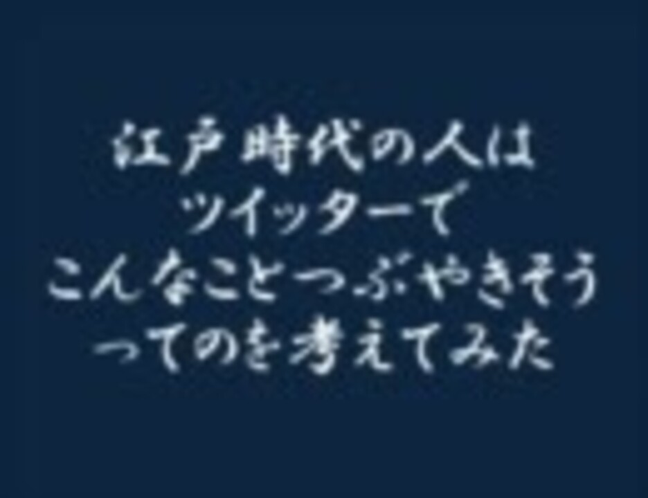 ツイッターの「江戸時代のtwitterにありがちなこと」ハッシュタグのつぶやきが面白かったので、自分でもこのハッシュタグでいくつかつぶやいてみました。<br />そのときのつぶやきをまとめて、少し編集しました。<br />n番煎じと思いますが、時間つぶしにご覧いただければ幸いです。<br />※冒頭の説明文が若干奇妙になってますが、あまりお気になさらぬよう。<br />※続・江戸時代のツイート→<a href="https://www.nicovideo.jp/watch/sm15318034" class="watch">sm15318034</a> 音楽家ツイート→<a href="https://www.nicovideo.jp/watch/sm16748931" class="watch">sm16748931</a>