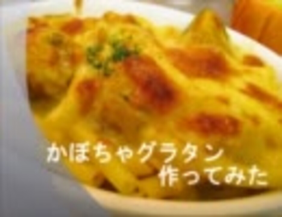 <font color="gray" size="2">この動画は、先日co292007にて行われた料理枠(<a href="https://live.nicovideo.jp/watch/lv65015777" target="_blank" rel="noopener">lv65015777</a>)の<br />ダイジェスト版です・・・<br /><br /><s>・・・といっても作り直して撮り直してるとこもあr(ry</s><br /><br /><font color="#ff8c00"><b>かぼちゃグラタン作ってみました!</b></font><br /><br />突っ込みどころ満載ですが、一応本人は一生懸命です、<br />まぁある程度は大目に見てやってください、ある程度は( 。▰´◞◟`▰。)ノ<br /><br />動画作成も初心者なんで、音量・編集などに問題があるかも</font><br /><br />追記:<font color="red"><b>新作できました!⇒<a href="https://www.nicovideo.jp/watch/sm19138037" class="watch">sm19138037</a></b></font><br />✲牛乳のことですが、200mlパックのだいたい半量を目分量で入れてます<br /> 実際には100ccより少し多いくらいかもです・・<br />✲かぼちゃは牛乳を入れた後の方が、混ぜるとき楽な気がします・・