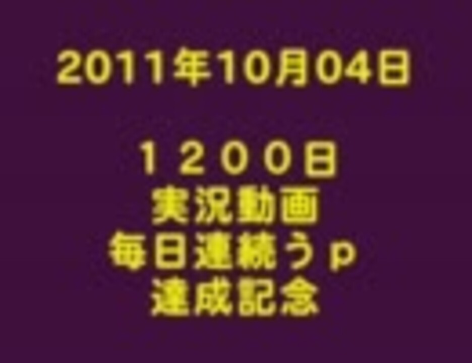 <font size="5">本日10月4日、本動画うpにて、<br />『1200日毎日連続うp』を達成です♪</font><br /><br />(*'∇')/゜・:*【祝】*:・゜\('∇'*)<br />総うpは2141動画です。<br /><br />これも、いつも応援してくださる皆様のおかげです!<br />本当にありがとうございます☆<br />これからも、皆様に少しでも楽しんでいただけるような「日課に出来るうp主」を目指して<br />楽しみながらがんばっていきたいと思います^^<br />皆様、これからもよろしくお願いします♪<br /><br />●達成記念ブログ記事→<a href="http://yukkuribunbun.blog65.fc2.com/blog-entry-3325.html" target="_blank" rel="noopener nofollow">http://yukkuribunbun.blog65.fc2.com/blog-entry-3325.html</a><br /><br />●もうひとつの記念動画→<a href="https://www.nicovideo.jp/watch/sm15806515" class="watch">sm15806515</a><br />前→<a href="https://www.nicovideo.jp/watch/sm15706015" class="watch">sm15706015</a> 次→<a href="https://www.nicovideo.jp/watch/sm15951279" class="watch">sm15951279</a> ●マリオカート→<a href="https://www.nicovideo.jp/mylist/26341728" target="_blank" rel="noopener">mylist/26341728</a><br />●全実況マイリスト一覧→<a href="https://www.nicovideo.jp/mylist/12911087" target="_blank" rel="noopener">mylist/12911087</a> ●ツイッター→<a href="http://twitter.com/bunbun0607" target="_blank" rel="noopener nofollow">http://twitter.com/bunbun0607</a>
