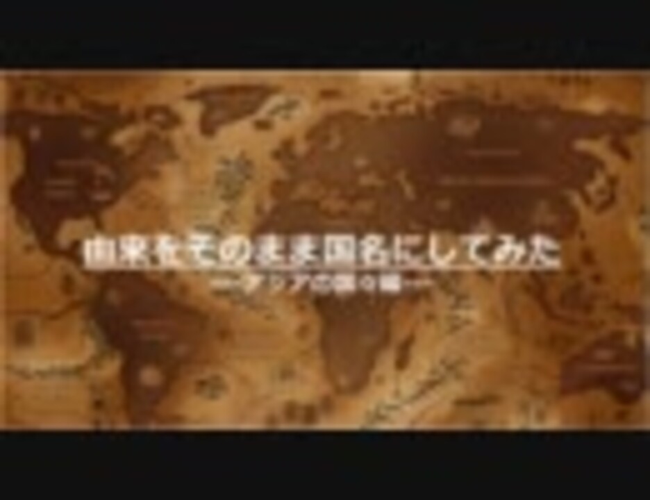 初動画になりますが、宜しくお願いします。<br /> 本動画は国名を和訳するとこうなる(<a href="https://www.nicovideo.jp/watch/sm14609144" class="watch">sm14609144</a>)を視聴し、せっかくなら全世界版をつくってみようと思い立って作ったものであり、一部細かい内容が異なる場合があります(いわゆるインスパイア)。加えて、由来には諸説ありますので、本動画中の情報の正確性については一切責任が持てません。つきましては、間違いや補足等々はコメントで書いて頂けますと助かりますヽ(´ー`)ノ<br /><br /> 今後、ゆったりと各地方版を作成していく予定です。<br /><br /> マイリスト:<a href="https://www.nicovideo.jp/mylist/28292904" target="_blank" rel="noopener">mylist/28292904</a><br /><br /> 次回作進捗状況:3割。とんでもないミスをしていたorz