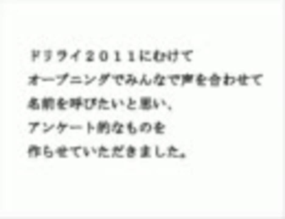 【11/15 ドリライお疲れ様でした。ドリライは終わりましたが、この動画は記念(?)に残しておこうかと思いますので、お好きに叫んでやってください(笑)ご協力ありがとうございました!】 オープニングで恒例の声合わせをしたいので、ご協力よろしくお願いします…。 ※動画のスピードちょっと早いかもです;すみません; ◆お借りした音源⇒<a href="https://www.nicovideo.jp/watch/sm15828954" class="watch">sm15828954</a>