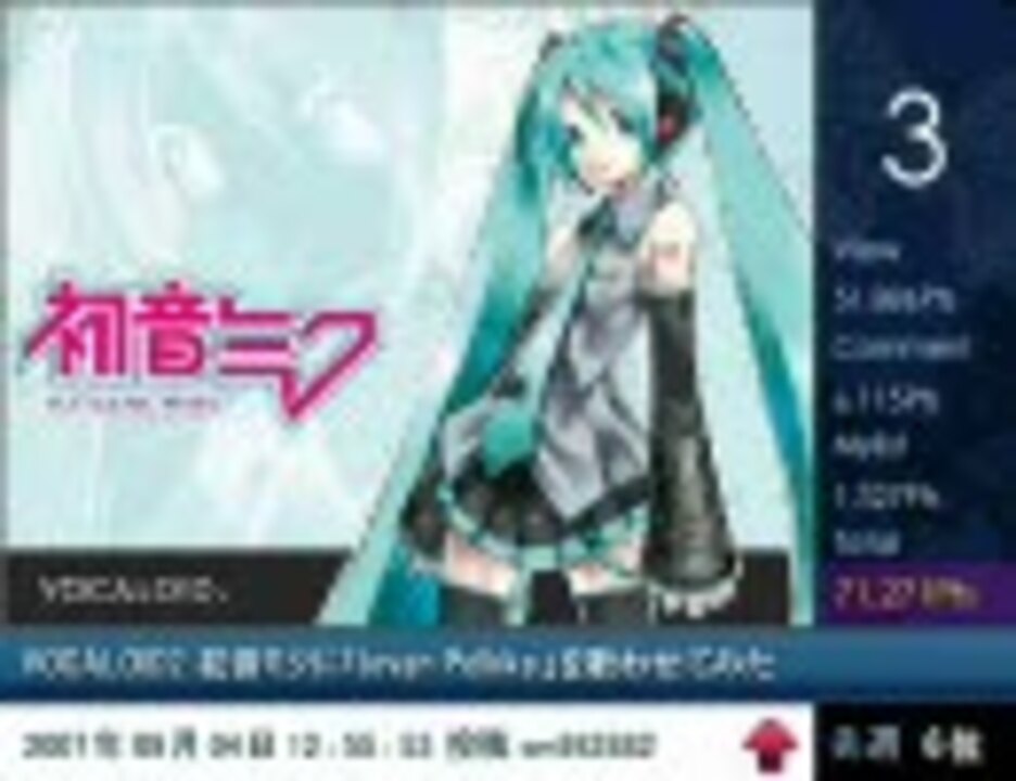 | 番号 | 総合順位 | ポイント | ジャンル順位 | カテゴリ | 再生順位 | 再生数 | コメント順位 | コメント数 | マイリスト順位 | マイリスト数 | いいね順位 | いいね数 |