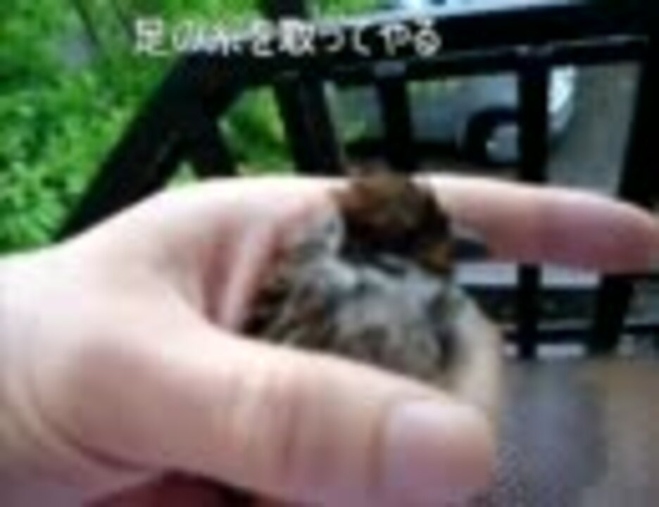 クモの巣にかかったスズメ