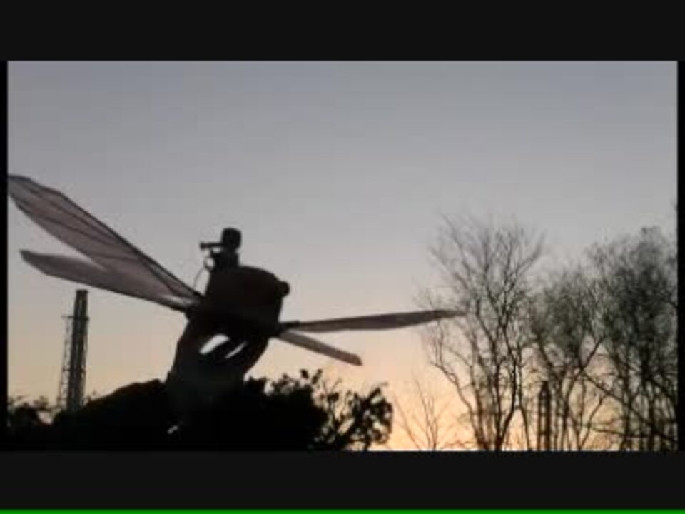 天空の城ラピュタのフラップターのラジコンモデルです。宮崎駿氏のアニメに登場する飛行物体は魅力的です。4枚の翼による羽ばたき飛行に成功しました<a href="https://www.nicovideo.jp/watch/sm16196596" class="watch">sm16196596</a>。若き日のドーラを乗せて2回目の試験飛行です。モーターをAXI2203-46に変更し、重さが214gと増加しましたが、飛行は良好。 初期の飛行(2011/11/20 <a href="https://www.nicovideo.jp/watch/sm16219892" class="watch">sm16219892</a>)。2011/11/23 進化した飛行映像 <a href="https://www.nicovideo.jp/watch/sm16245712" class="watch">sm16245712</a> 。 11/27 風の中での長い飛行と滑空試験 <a href="https://www.nicovideo.jp/watch/sm16280984" class="watch">sm16280984</a> 。 ハイビジョン影像は <a href="http://www.youtube.com/watch?v=llP1fPXJYUI詳細は" target="_blank" rel="noopener nofollow">http://www.youtube.com/watch?v=llP1fPXJYUI詳細は</a> <a href="http://homepage2.nifty.com/smark/Habataki.htm" target="_blank" rel="noopener nofollow">http://homepage2.nifty.com/smark/Habataki.htm</a>