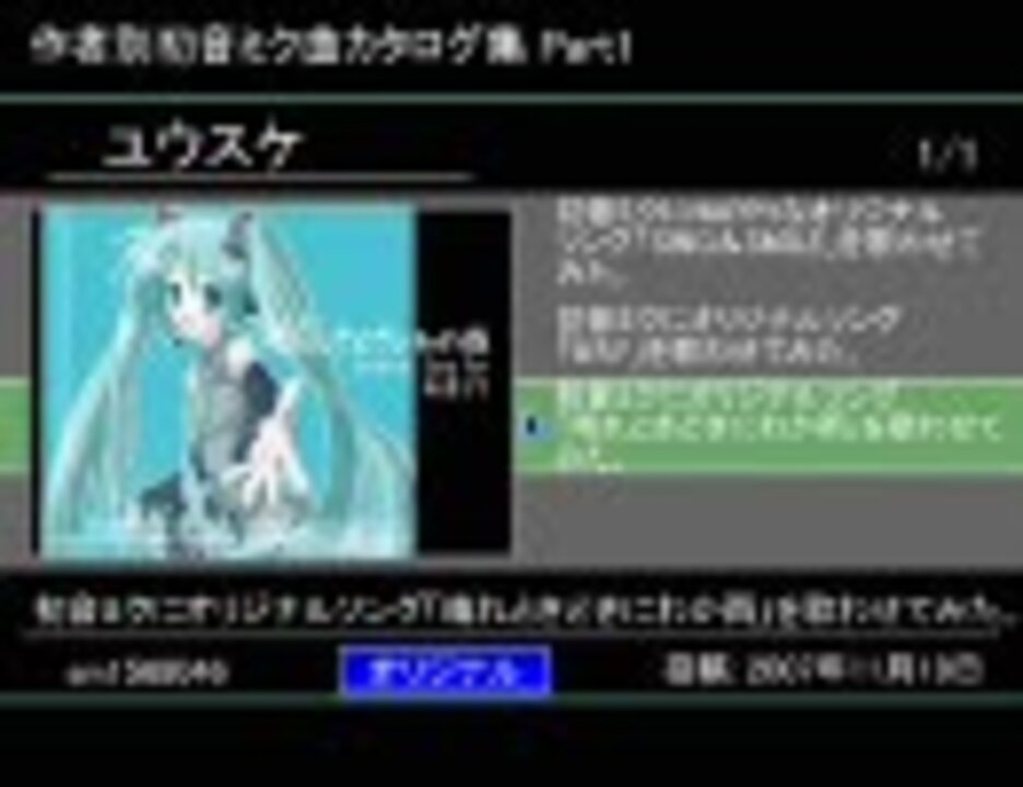 ミク曲が増えて把握できなくなってきたので作者様別にまとめてみました。<br />6名をピックアップ、34曲収録。<br />各代表作へのリンク<a href="https://www.nicovideo.jp/mylist/3645423" target="_blank" rel="noopener">mylist/3645423</a><br />カタログ集リンク<a href="https://www.nicovideo.jp/mylist/3682208" target="_blank" rel="noopener">mylist/3682208</a><br />(作者選考の必須条件は2曲以上曲があることとマイリストを公開もしくは他作品へのリンクがある方です。)<br />Part2→<a href="https://www.nicovideo.jp/watch/sm1620859" class="watch">sm1620859</a><br />作者別KAITO曲カタログ(うp主は別)→<a href="https://www.nicovideo.jp/watch/sm3786682" class="watch">sm3786682</a><br />レンカタログPart1→<a href="https://www.nicovideo.jp/watch/sm4373008" class="watch">sm4373008</a><br />聴きたい曲のときに「<font color="red" size="big">見たい</font>」と入力するとその動画へ移動します。<br />「<font color="red" size="big">新作が見たい</font>」と入力するとその作者様の新作がある場合移動します。<br />リンカタログPart1→<a href="https://www.nicovideo.jp/watch/sm2519420" class="watch">sm2519420</a><br />Vocaloid曲検索サイト「ぼかさち」<a href="http://bokasachi.natsu.gs/(「" target="_blank" rel="noopener nofollow">http://bokasachi.natsu.gs/(「</a><font color="red">2700曲以上収録</font>)