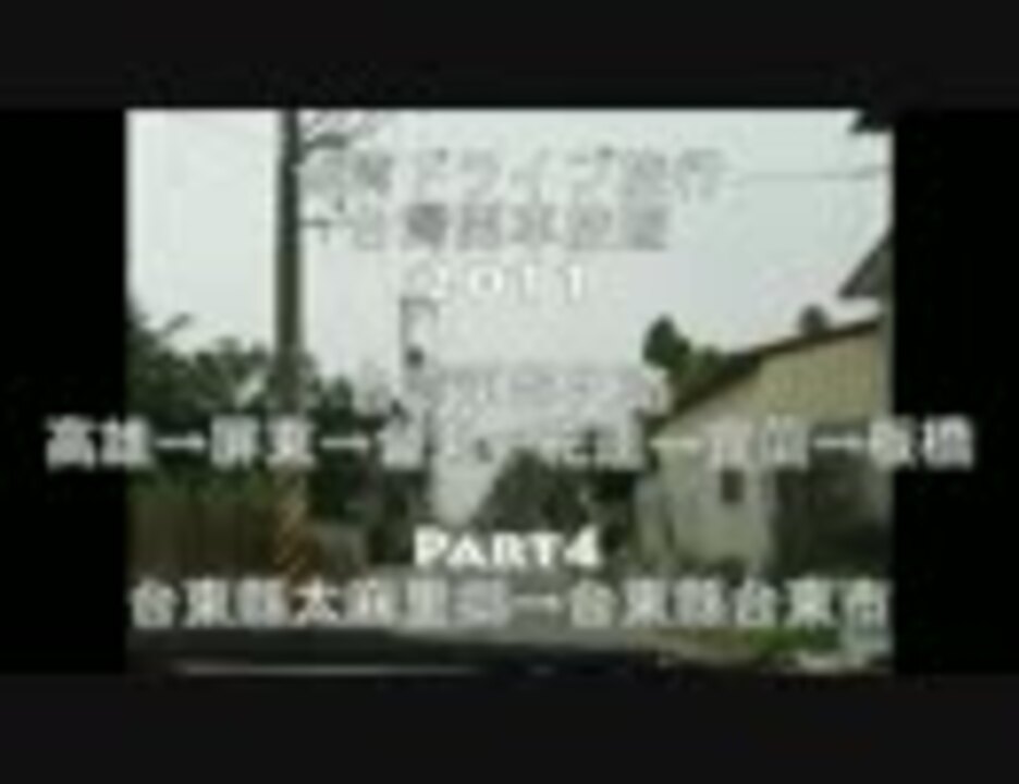2011Part1 <a href="https://www.nicovideo.jp/watch/sm16392207" class="watch">sm16392207</a> 2 <a href="https://www.nicovideo.jp/watch/sm16451113" class="watch">sm16451113</a> 3 <a href="https://www.nicovideo.jp/watch/sm16512970" class="watch">sm16512970</a> 5-1 <a href="https://www.nicovideo.jp/watch/sm16634767" class="watch">sm16634767</a> 5-2 <a href="https://www.nicovideo.jp/watch/sm16635124" class="watch">sm16635124</a> 6 <a href="https://www.nicovideo.jp/watch/sm16754942" class="watch">sm16754942</a> 7-1 <a href="https://www.nicovideo.jp/watch/sm16814963" class="watch">sm16814963</a> 7-2 <a href="https://www.nicovideo.jp/watch/sm16815457" class="watch">sm16815457</a><br />台湾東部攻略 高雄→屏東→台東→花蓮→宜蘭→新北板橋<br />Part4 台東縣太麻里鄉→台東縣台東市<br />旅行日:2011年11月17日~19日 使用車輌:Nissan Tiida<br />本シリーズは車載動画を中心に台湾各地の映像・写真を交えた動画です。<br />本系列動畫以車載動畫為主要片段,還加上台灣各地的影像和照片。<br />歡迎中文留言。日本語のコメントもよろしくです。<br />2008Part1 <a href="https://www.nicovideo.jp/watch/sm5413011" class="watch">sm5413011</a> 2009Part1 <a href="https://www.nicovideo.jp/watch/sm8944579" class="watch">sm8944579</a> 2010Part1 <a href="https://www.nicovideo.jp/watch/sm1293807" class="watch">sm1293807</a> Mylist <a href="https://www.nicovideo.jp/user/3700871/video" target="_blank" rel="noopener">myvideo/3700871</a><br />特別感謝 鴻德汽車保養場 感謝委員長桑 台湾人が中国語でPONPONPONを歌ってみた <a href="https://www.nicovideo.jp/watch/sm16376757" class="watch">sm16376757</a><br />製作/聯絡 PTT twitter plurk account:sepatakurou