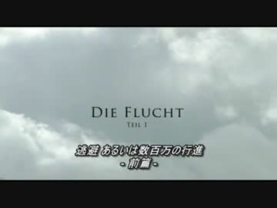 2/5→<a href="https://www.nicovideo.jp/watch/sm16698941" class="watch">sm16698941</a> 1944年7月。フランスでは西側連合国軍がドイツ軍を圧倒し、一方の東では中央軍集団が壊滅、ソ連軍は破竹の勢いで西進し、ベルリンは昼夜を問わず空襲を受けていた。そんなある日ベルリンに住むレナは、電報で父が重病であることを知り、8年ぶりに故郷の東プロイセンへと向かう・・・ この番組はドイツのテレビ局"ARD"が900万ユーロ以上の予算を掛けて制作、東プロイセンから逃げるドイツ人の姿を初めて本格的に描き、賛否両論を呼んだ問題作。 2007年3月に前篇後篇のテレビスペシャルとして放送され、前篇はドイツで1118万人もの視聴者を獲得した。なお字幕は英語字幕を基にしたセルフです。 新マイリスト→<a href="https://www.nicovideo.jp/mylist/29952635" target="_blank" rel="noopener">mylist/29952635</a> 戦友旧マイリスト→<a href="https://www.nicovideo.jp/mylist/22197395" target="_blank" rel="noopener">mylist/22197395</a> 戦友新マイリスト→<a href="https://www.nicovideo.jp/mylist/26440361" target="_blank" rel="noopener">mylist/26440361</a>