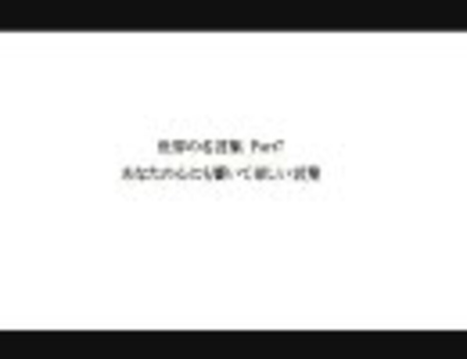 2週間ぶりにうp。偉大なる歴史の人物から、現代人まで、名言だと思うものを勝手にチョイスしました。名言だけあって、心に響くものばかりです。Part7です。 BGM何?って書き込みがあったんで書きますと、曲はご存知の方も多いと思いますが、keyのカノン、AIR、クラナドなどのBGMをピアノ曲にアレンジした、「Re feel」、「ピアノの森」から使用しています。なるべく、ゆったりとし曲を選曲しているつもりです。ちなみに、Part1,2はマイラバの曲を使用。Part6 <a href="https://www.nicovideo.jp/watch/sm1619237" class="watch">sm1619237</a> part8 <a href="https://www.nicovideo.jp/watch/sm1734855" class="watch">sm1734855</a>