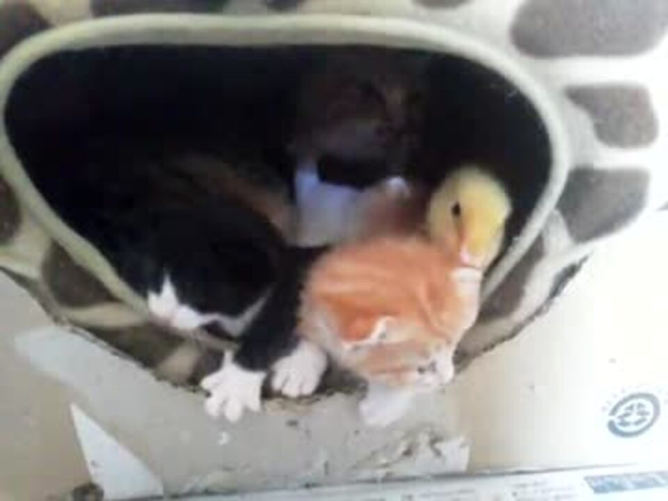 くにゃん猫のお母さん的存在のはにわが三匹の子猫を産みました~!黄色いのは気にしないでください(´▽`)