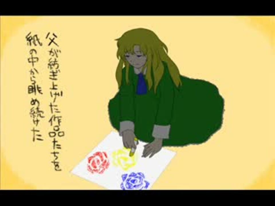 ■願いごとをしてました ■スペクタクルPの「The Beast.」の替え歌動画です。メアリーのおはなし。絵はだいたいトレスになります ■お借りした涙腺崩壊な動画様→<a href="https://www.nicovideo.jp/watch/sm12075172" class="watch">sm12075172</a> フリーゲーム「Ib」のサイト様→<a href="http://kouri.kuchinawa.com/game_01.html" target="_blank" rel="noopener nofollow">http://kouri.kuchinawa.com/game_01.html</a> ■盛大なネタバレ、個人的な解釈、考察、妄想含みます。ゲーム未クリアの方、世界観を大切にしたい方は閲覧をご遠慮ください。 ■追記:たくさんの再生・コメント・マイリストありがとうございます!そしてなんと歌ってくださった方が…!→<a href="https://www.nicovideo.jp/watch/sm17740905" class="watch">sm17740905</a> <a href="https://www.nicovideo.jp/watch/sm17744850" class="watch">sm17744850</a> <a href="https://www.nicovideo.jp/watch/sm17757595" class="watch">sm17757595</a> <a href="https://www.nicovideo.jp/watch/sm17760698" class="watch">sm17760698</a> <a href="https://www.nicovideo.jp/watch/sm17769068" class="watch">sm17769068</a> <a href="https://www.nicovideo.jp/watch/sm17780077" class="watch">sm17780077</a> <a href="https://www.nicovideo.jp/watch/sm17785089" class="watch">sm17785089</a> <a href="https://www.nicovideo.jp/watch/sm17793554" class="watch">sm17793554</a> <a href="https://www.nicovideo.jp/watch/sm17797527" class="watch">sm17797527</a> <a href="https://www.nicovideo.jp/watch/sm17808251" class="watch">sm17808251</a> <a href="https://www.nicovideo.jp/watch/sm17875954" class="watch">sm17875954</a> <a href="https://www.nicovideo.jp/watch/sm17897659" class="watch">sm17897659</a> <a href="https://www.nicovideo.jp/watch/sm17975036" class="watch">sm17975036</a> <a href="https://www.nicovideo.jp/watch/sm17954316" class="watch">sm17954316</a> <a href="https://www.nicovideo.jp/watch/sm18006430" class="watch">sm18006430</a> <a href="https://www.nicovideo.jp/watch/sm18626674" class="watch">sm18626674</a> <a href="https://www.nicovideo.jp/watch/sm17760698" class="watch">sm17760698</a> <a href="https://www.nicovideo.jp/watch/sm18848840" class="watch">sm18848840</a> UTAUカバーもしていただきました!→<a href="https://www.nicovideo.jp/watch/sm17784679" class="watch">sm17784679</a> リンちゃんカバーも!→<a href="https://www.nicovideo.jp/watch/sm18609297" class="watch">sm18609297</a>