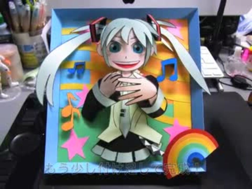 半立体のなんちゃってペーパークラフトです。こっちを見るように初音ミクを作ってみました。