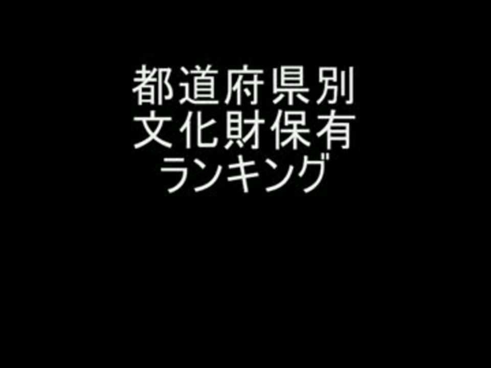 都道府県対抗の文化財保有数のランキングの2012年β版です。2012年版で和歌山の世界遺産件数に関する意見があったので改正しました。あくまで文化財としてのカウントですので、出雲大社のような宗教上重要な施設も重要文化財としてカウントされています。順位の低い県を文化度の低い県と言うつもりはないのでご了承ください。