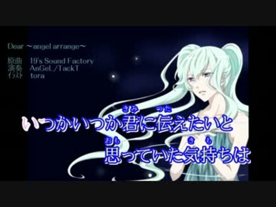 <br />TackT「なんかうpしたいけど曲がきまらん(´A`)」<br />優「知り合いに聞いてこよっか?」<br />TackT「(。´・д・)エッ」<br />優「Dearのピアノバージョンがいいってさ」<br />TackT「(;゚д゚)ェ. . . . . . .」<br />優「あ、絵師さん見つけといたから」<br />TackT「エ━━━(;゚д゚)━━━・・」<br />優「もううpれるけど詳細文どうしよ?」<br />TackT「工エエェェ(´д`)ェェエエ工」<br />ということでニコカラにされてみました<br /><br />piano:AnGeL/TackT <a href="https://www.nicovideo.jp/mylist/17177189" target="_blank" rel="noopener">mylist/17177189</a> <br />illustration:tora <a href="https://www.nicovideo.jp/mylist/31935108" target="_blank" rel="noopener">mylist/31935108</a> <br />ニコカラ:よし <a href="https://www.nicovideo.jp/mylist/25160823" target="_blank" rel="noopener">mylist/25160823</a> <br />Special Thanks:天神@優 <a href="https://www.nicovideo.jp/mylist/32192394" target="_blank" rel="noopener">mylist/32192394</a><br /><br /><br />動画が重いと感じる人、またはコメントを非表示にしたい人は<br />コメントで「/off」と打ってコメントしてください<br /><br /><br />本家様はこちら→<a href="https://www.nicovideo.jp/watch/sm2651288" class="watch">sm2651288</a><br /><br />