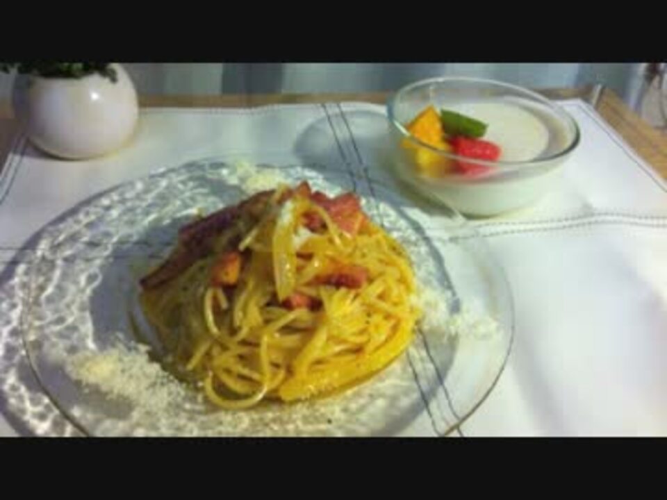 アールグレイのパンナコッタも作ってみました。<br />前回うpさせていただいた「胃袋をつかむ食卓の作り方」のパスタをコレに変えてみるというていで作ってみました。<br /><br />カルボナーラ動画は<br /> 生クリームは本当は使わないとか<br />ベーコンじゃなくてパンチェッタだよとか<br />チーズはペコリーノだよとか<br />生意気だからムカつくとか<br />女子は食べるのが遅いからぼそぼそになっちゃうだとか<br />何かと騒がれがちですが、カルボナーラのレシピに定説はありません。<br />漢なら、黙ってカルボなれ!(σ-`д・´)キラーンです<br /> <br /> ちなみに、<br /> 卵黄、ペコリーノ・ロマーノチーズ、パンチェッタ、黒こしょうたっぷり・・・<br /> がポピュラーなレシピかとは思います。ハイ。<br /> <br /> うp主の投稿動画<a href="https://www.nicovideo.jp/mylist/31833113" target="_blank" rel="noopener">mylist/31833113</a>