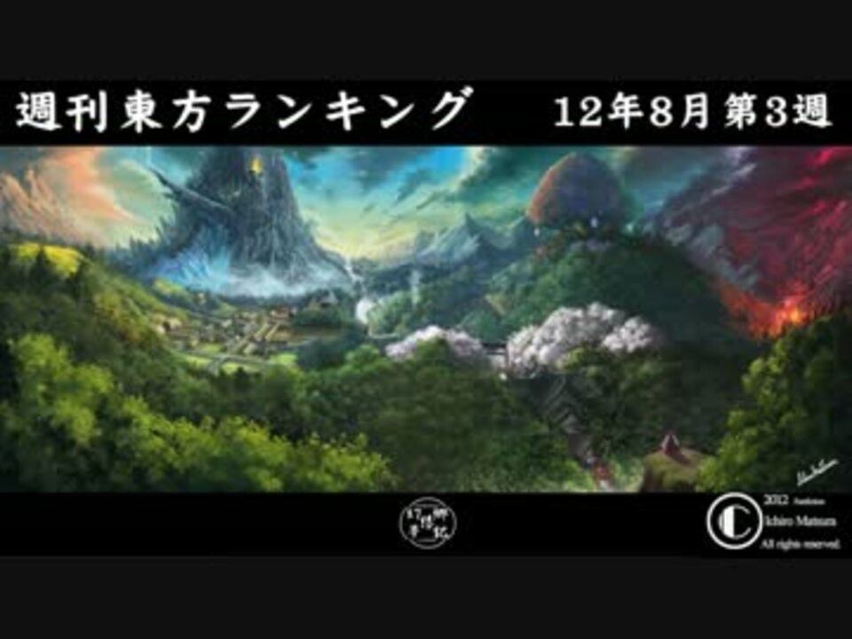 嵐の前の静けさ?いいえ、すでに嵐が来ています。。。<br />週刊東方ランキング、今週もよろしくお願いします!<br /><br />■集計日時:2012年8月18日(土)<br />■集計期間:2012年8月11日(土) 6:00~8月18日(土) 6:00<br /><br />■今週のプレイリスト[<a href="http://dic.nicovideo.jp/v/sm18665796]" target="_blank" rel="noopener nofollow">http://dic.nicovideo.jp/v/sm18665796]</a><br />■週刊東方ランキング一覧[<a href="https://www.nicovideo.jp/mylist/10450068" target="_blank" rel="noopener">mylist/10450068</a>]<br />■週刊東方ランキングコミュニティ[co1671378]<br />[<a href="https://www.nicovideo.jp/watch/sm18605023" class="watch">sm18605023</a>]←先週 次週→[<a href="https://www.nicovideo.jp/watch/sm18737779" class="watch">sm18737779</a>]<br /><br />■週刊東方ランキング 歴代ランキング[<a href="http://nazr.in/Qx]" target="_blank" rel="noopener nofollow">http://nazr.in/Qx]</a><br />■週刊東方ランキング 結果一覧[<a href="http://nazr.in/Qy]" target="_blank" rel="noopener nofollow">http://nazr.in/Qy]</a><br /> ※歴代ランキング、結果一覧は短縮URLです。リンク先はニコニコ大百科です。<br /><br /><br />PS:近々、週刊東方ランキングの投稿日と集計期間を変更する予定です。詳細は次週!<br />