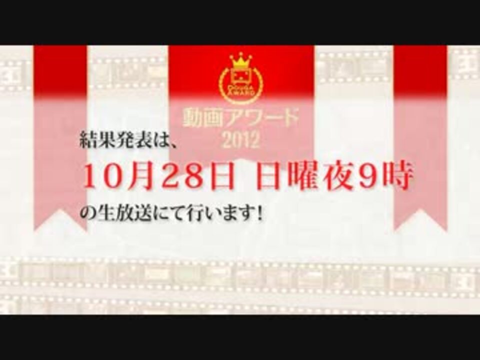 2012年6月~9月に投稿された動画の中から、もっともすばらしかった動画と、各カテゴリーのMVDが決定する「第5回動画アワード」<br>10月28日夜9時の生放送では、各カテゴリのMVDを紹介し、投票で人気のあった上位カテゴリ9つの中から、視聴者の皆さんの投票で「グランプリ」を決定します。<br><font size="12">エンターテイメントカテゴリのMVDはこの3作品から決定します!</font><br><br>【第9回MMD杯本選】ギャリイヴメアリー『絵?あぁ、そう。』【Ib/96猫】<br><a href="https://www.nicovideo.jp/watch/sm18641734" class="watch">sm18641734</a><br>自主制作「仮面ライダーシンギ」作ってみた<br><a href="https://www.nicovideo.jp/watch/sm18341277" class="watch">sm18341277</a><br>【第9回MMD杯本選】かわいいと思ったら負け【ガキの使い七変化】<br><a href="https://www.nicovideo.jp/watch/sm18651331" class="watch">sm18651331</a><br><br><b><a href="http://blog.nicovideo.jp/award/index.html">■動画アワード特設サイトはこちらから</a></b>